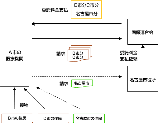 接種協力医療機関への予防接種委託料金の支払は国保連合会から行いますが、書類の提出先が名古屋市役所になります。